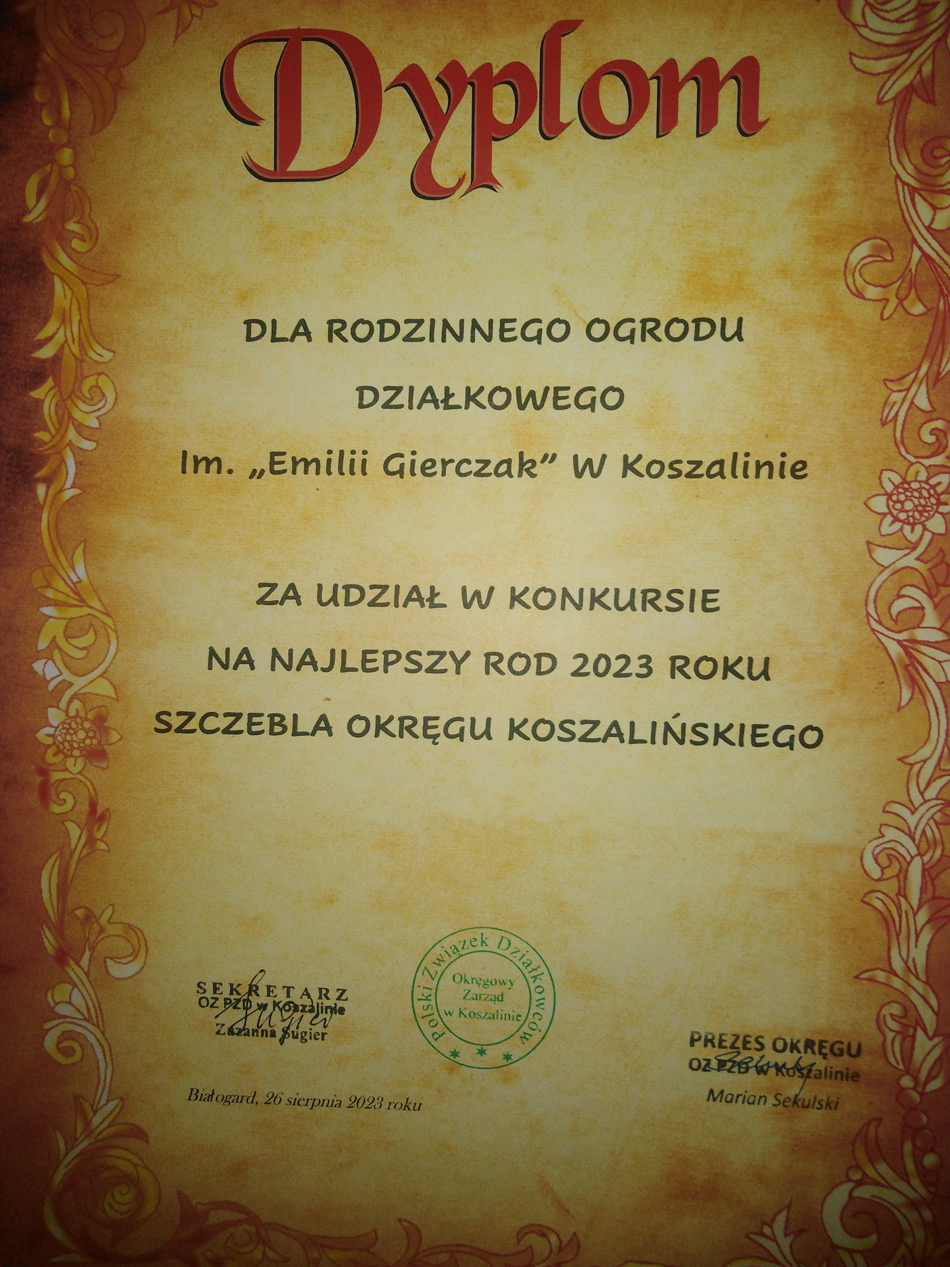 Dyplom i nagroda dla ROD im. E. Gierczak