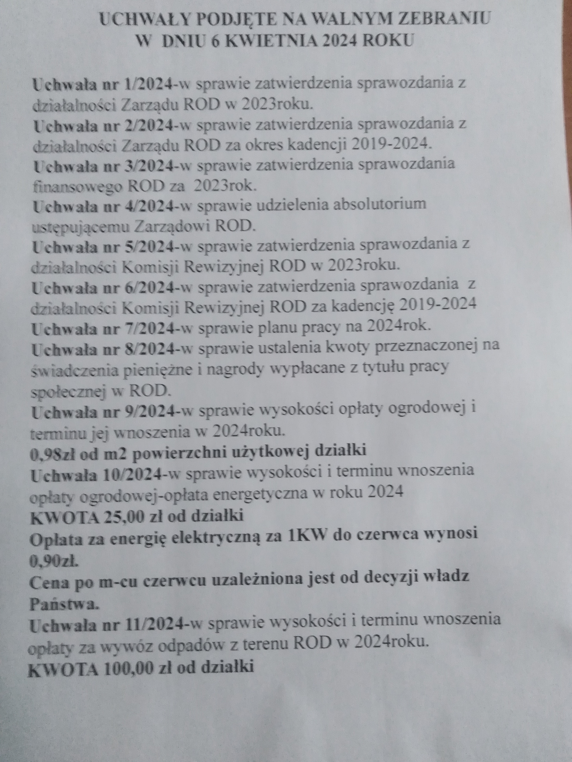 Uchwały podjęte na Walnym Zebraniu w dniu 6.4.2024 r.